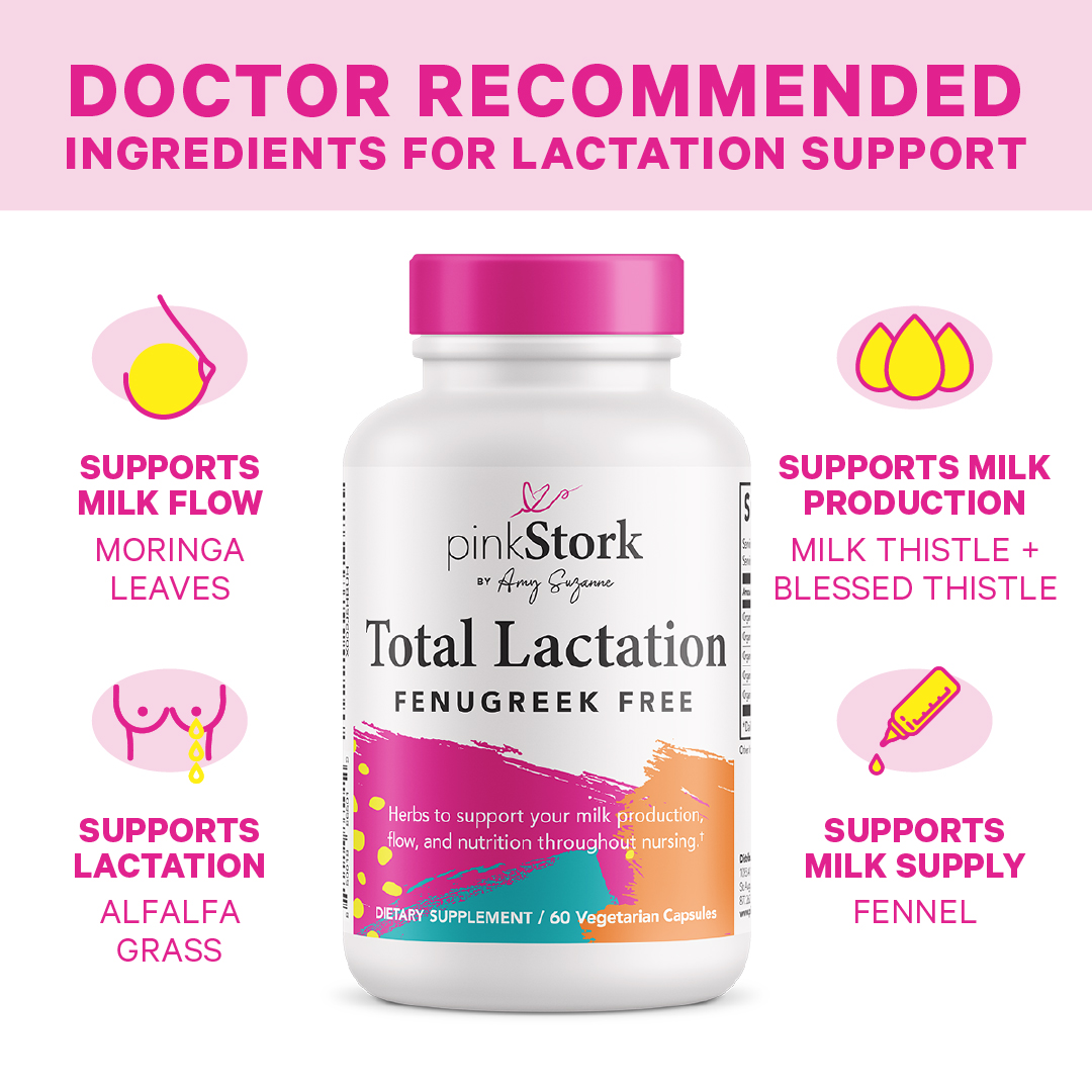 Total Lactation Fenugreek Free 60 Capsules Breastfeeding Support For Mom And Baby Increase And Enhance Milk Supply And Flow Pink Stork